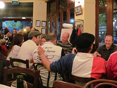 We went out last night to celebrate with our son and his partner... we went to a restaurant called Pasti.  This is a French restaurant in the City and last night it was amazing ~ packed to the gunnel's as last night was the Rugby World Cup Semi Final between France and Wales.  The tables were all placed together and you were sitting beside people you didn't know... the whole atmosphere was fabulous... and it really went off when the final whistle blew and France were the winners 9-8.  Here's some photos