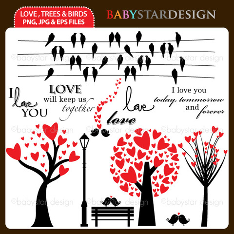 This week we are showcasing a very lovable set of images called Love, Trees & Birds, created by Baby Star Designs.